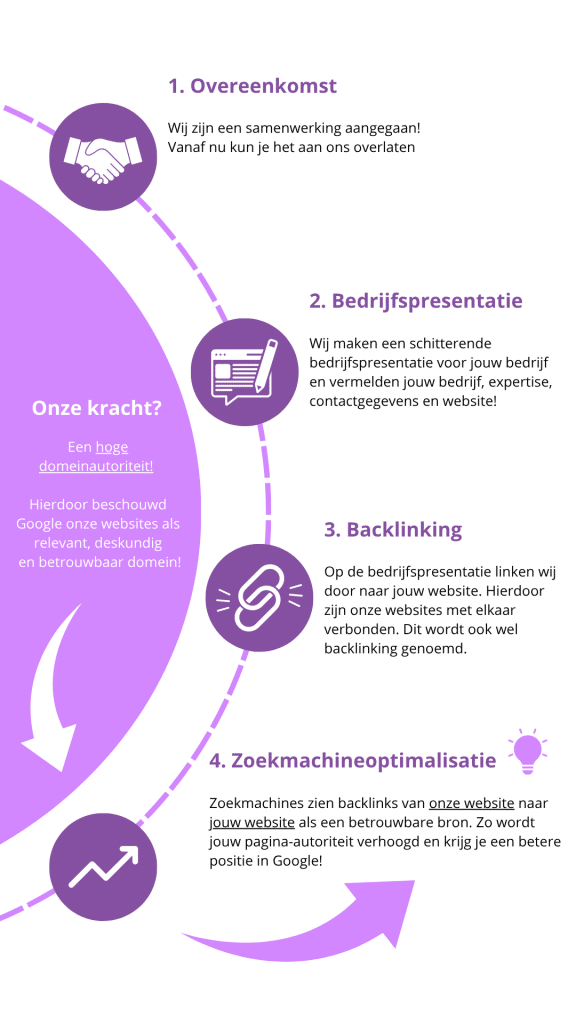 Backlinks worden door zoekmachines als Google gezien als een soort aanbeveling voor jouw website. Hoe meer kwalitatieve websites naar jouw pagina verwijzen, hoe betrouwbaarder en waardevoller jouw site wordt gezien. Dit resulteert in:
